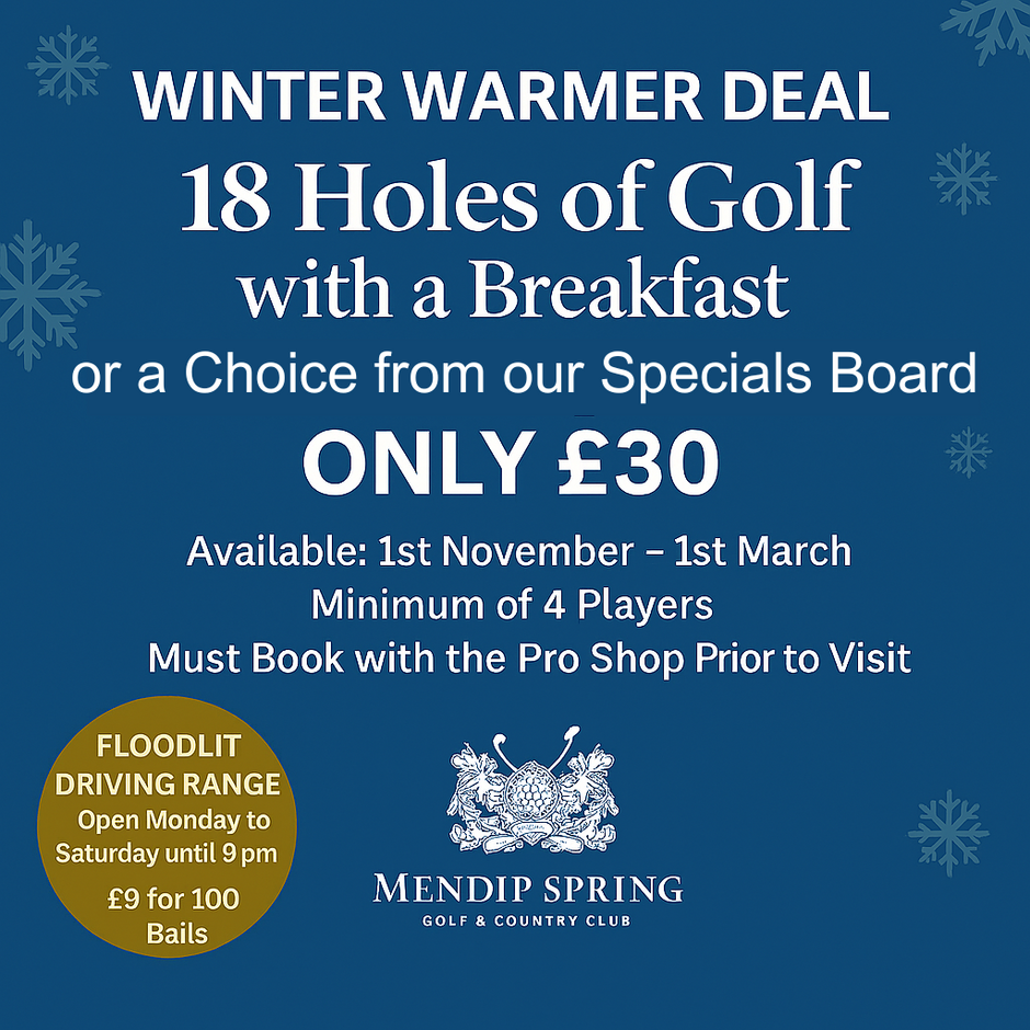 Mendip Sping is a warm & welcoming golf club. Visitors can come & play The Brinsea Championship Course Monday to Friday and after 11am at weekends. From Monday to Sunday booking is required and can be made upto 7 days in advance.When playing The Brinsea Course every golfer must have their own equipment and observe our dress code.